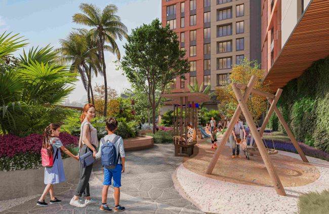 5 bin 500 metrekare arsa üzerinde 13 katlı iki blok halinde tasarlanan projede, 256 bağımsız bölümden oluşan konut ve ofisin yanında cadde mağazaları da yer alıyor.