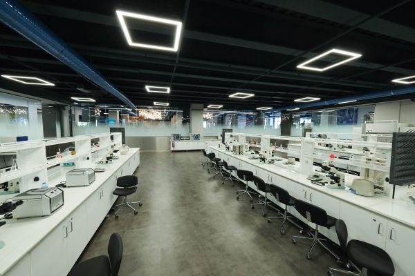 Sekiz katlı yapısı ve peyzaj alanı dahil yaklaşık 40 bin metrekarelik inşa alanı bulunan ana kampüs binasında rektörlük katında başlayarak her çizgide çağdaş bir sadelik, her yüzeyde zamansız bir estetik hâkim kılındı. Kampüsün kalbinde yer alan tıp ve eczacılık fakülteleri; derslikler, amfiler, laboratuvarlar ve sosyal alanlarla çevrelendi. Elektronikten moleküler biyolojiye, anatomi ve biyokimyadan mikrobiyolojiye uzanan farklı laboratuvarlarda teknoloji ile mekânsal konforun dengesi titizlikle sunuldu. Özellikle konferans salonundaki akustik denge; kat yüksekliği ve mekanik sistemlerin uyumu ile üst seviyeye taşındı. Dere kenarında olduğu için ileri teknoloji kullanılarak zemin iyileştirmesi yapılan İstinye Üniversitesi Vadi Ana Kampüs Projesi, yaklaşık 11 bin metrekareyi bulan peyzaj alanıyla da “teknik mükemmeliyetin zarafetle buluştuğu bir mimari manifesto” olarak yorumlanıyor.